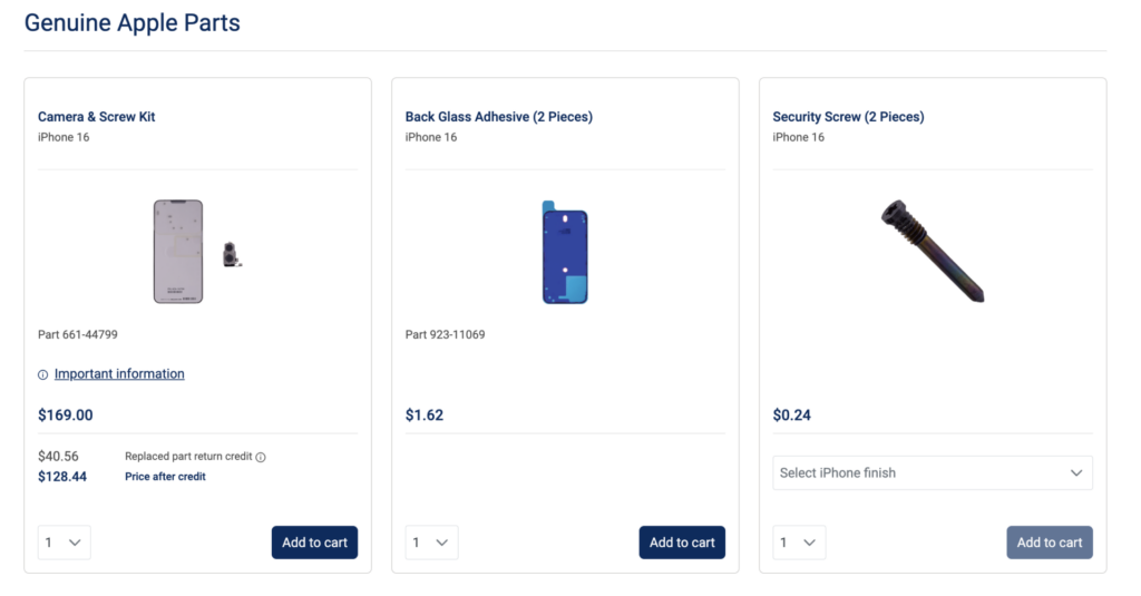 Apple Inc. AAPL has started selling repair parts for its newest iPhone 16 and iPhone 16 Pro models through its self-service repair store.
