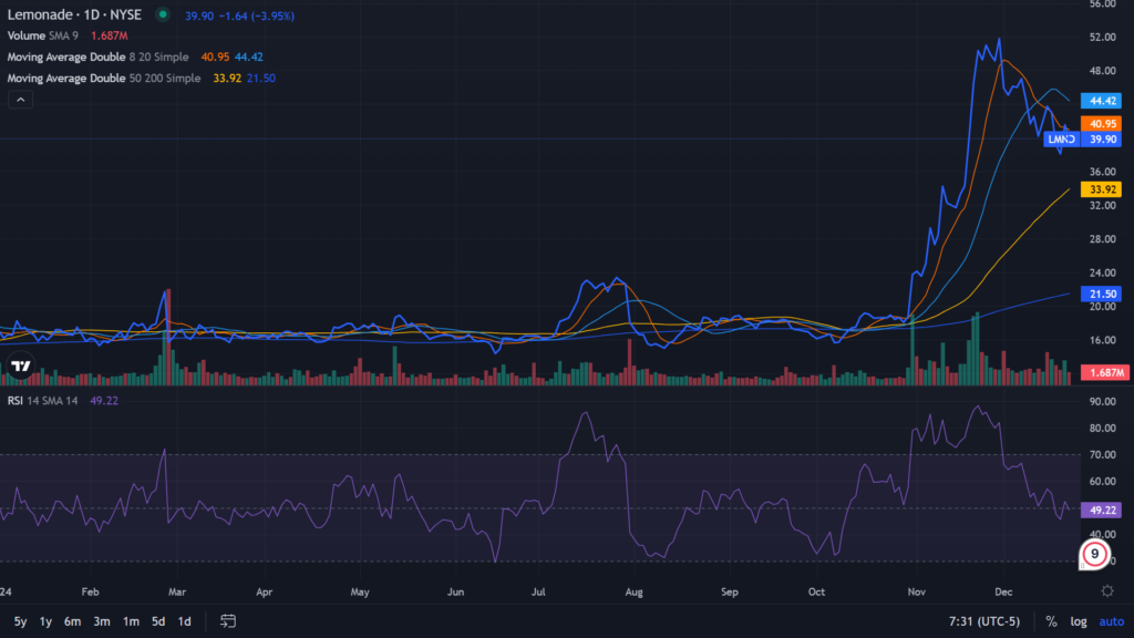 “Insurance-Tech Firm Lemonade Insiders Sell Shares: Technical Analysis Indicates Short-Term Bullish Momentum”