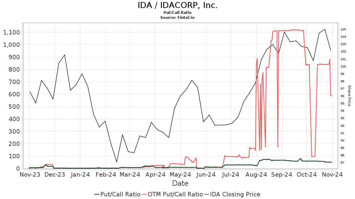 Currently, 829 funds or institutions hold positions in IDACORP, a decrease of 10 owners, or 1.19%, from the last quarter. The average portfolio weight allocated to IDA by these funds has risen slightly to 0.21%, an increase of 2.18%. However, total shares held by institutions have fallen by 1.93% in the past three months to 54,603K shares. The current put/call ratio stands at 50.00, indicating a bearish sentiment.