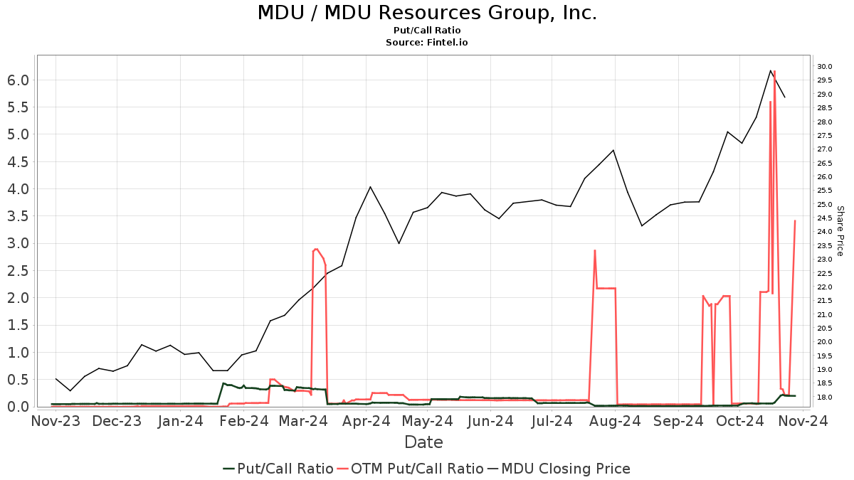 MDU’s put/call ratio is at 0.12, which indicates a bullish sentiment among investors.