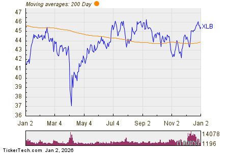 The chart below shows the one year performance of SLVM shares, versus its 200 day moving average: