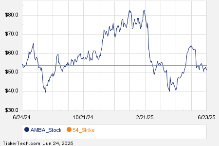 Ambarella, Inc. (AMBA) reported a trading volume of 6,301 contracts today, equating to approximately 630,100 underlying shares, which is 58.3% of its average daily ...