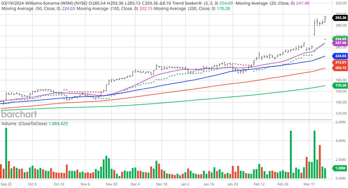 Willliams-Sonoma, the renowned high-end houseware company, has been making waves in the market with its soaring stock performance. Since the Trend Seeker signaled a buy on 2/9, the stock has surged impressively by 33.35%, leaving investors eager to capitalize on the momentum.
