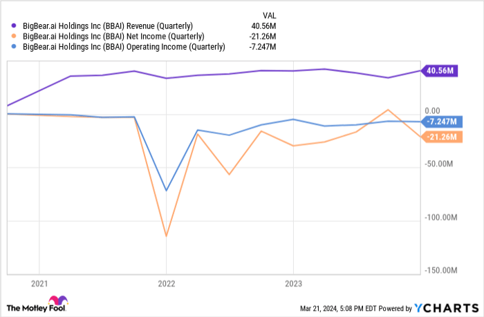 BigBear.ai shares the same AI-centric DNA as its larger competitors but distinguishes itself in key aspects. Despite mirroring the core mission of aiding organizations in harnessing data for actionable insights, BigBear.ai stands out due to its modest scale. With a revenue of $155 million in the previous year, it pales in comparison to Palantir’s $2.2 billion and C3.ai’s nearly $300 million over four quarters. Moreover, while market behemoths like Palantir boast market caps in the billions, BigBear.ai hovers around a humble $500 million.