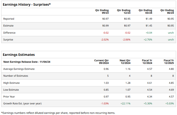 Springfield, Massachusetts-based Eversource Energy (ES), a leading public utility holding company, is involved in energy delivery across various segments. With a market cap of $22.9 billion, its operations include Electric Distribution, Electric Transmission, Natural Gas Distribution, and Water Distribution. The company is set to announce its Q3 earnings on Monday, Nov. 4.