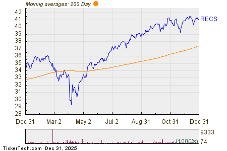 In terms of performance, RECS reached a 52-week low at $28.6404 per share and a high of $41.8099, with the last trading price recorded at $41.06. Major underlying components of RECS include Vanguard Communication Services ETF (VOX), Pfizer Inc (PFE), and The Charles Schwab Corporation (SCHW), which have shown slight declines of about 0.2% to 0.3% today.
