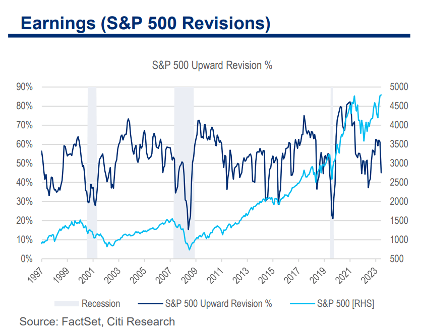 Despite a decline in the upward revisions for the S&P 500 (SP500) as a percentage of total revisions month-over-month, dropping to 45.1% in January from 61.2% in December, this downward trend is in line with the 25-year seasonal average, as noted in the report. Citi Research’s report anticipates full-year 2024 consensus estimates to decline post the reporting of Q4 earnings, citing historical -5% revision as a common trend.