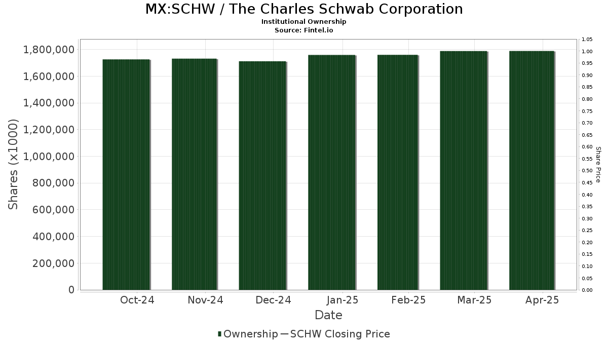JPMorgan Chase holds 49,064K shares, representing 2.70% ownership. Their previous report noted 48,307K shares, reflecting an increase of 1.54%. JPMorgan Chase also raised its SCHW portfolio allocation by 13.66% in the most recent quarter.