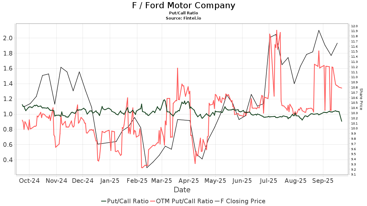 The put/call ratio for Ford stands at 0.92, indicating a bullish market outlook. Notable shareholders include Newport Trust with 148.45 million shares (3.80% ownership) and Charles Schwab Investment Management with 145.17 million shares (3.71% ownership), both adjusting their portfolio allocations in the last quarter.