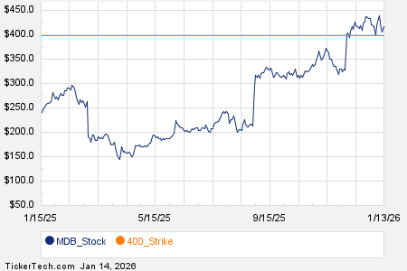 Johnson & Johnson (JNJ) experienced a volume of 31,946 contracts, representing about 3.2 million underlying shares—40.2% of its average daily trading volume of 7.9 million shares. The $220 strike call option, set to expire January 16, 2026, recorded 4,751 contracts, amounting to roughly 475,100 underlying shares.