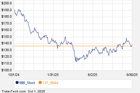 AES Corp (AES) experienced a trading volume of 82,561 contracts, or around 8.3 million underlying shares, which is 87.6% of its average daily volume of 9.4 million shares. The $16 strike call option expiring on October 3, 2025, had a high volume of 5,800 contracts traded, representing approximately 580,000 shares.