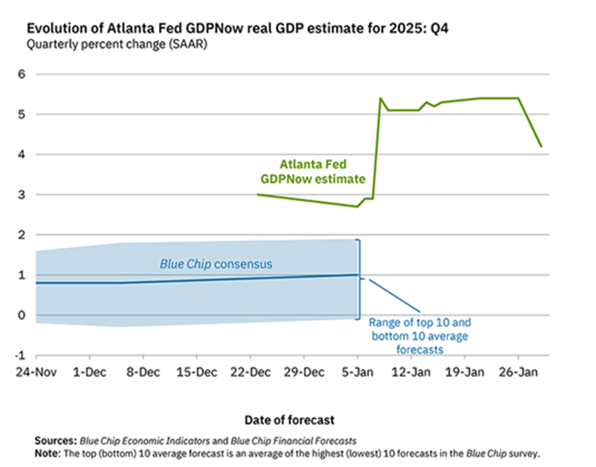 The U.S. economy is experiencing significant growth, with the Commerce Department revising its third-quarter GDP estimate to a 4.4% annual rate, following 3.8% growth in the second quarter. This marks the strongest consecutive growth since 2021, driven by a 3.5% increase in consumer spending and resilient corporate activity despite high interest rates. As a result, the Atlanta Fed projects a fourth-quarter GDP growth still above 4%, despite a widening trade deficit.