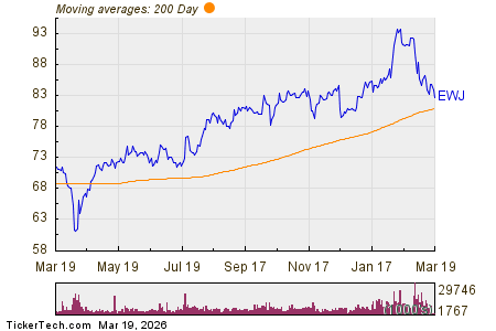 find out which 9 other ETFs have recently crossed below their 200-day moving average »