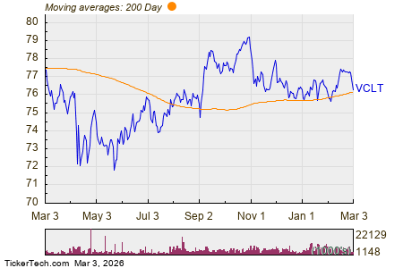 On Tuesday, shares of the iShares Expanded Tech Sector ETF (IGM) fell below their 200-day moving average of $121.65, trading as low as $121.16 per share, representing a decline of approximately 2.9% for the day. The current price is notably lower than its 52-week high of $135.81, with a low point of $76.26.