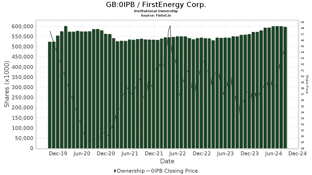 Sentiment among funds and institutions regarding FirstEnergy appears positive, with 1,385 institutions reporting their positions. This represents an increase of 34 owners or 2.52% in the last quarter. Funds have increased their average portfolio weight in 0IPB to 0.22%, a rise of 5.40%. Furthermore, total shares owned by institutions rose by 0.88% over the last three months, totaling 596,595K shares.