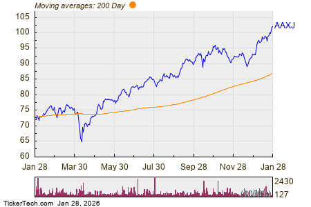 Currently, AVDE’s share price stands at $87.67, within a 52-week range of $58.55 to $88.67, as it is compared to its 200-day moving average. Among its primary holdings, ASML Holding NV is down 2.1%, HSBC Holdings plc declined by 1.9%, while Shell plc’s American Depositary Shares rose by 0.3%.