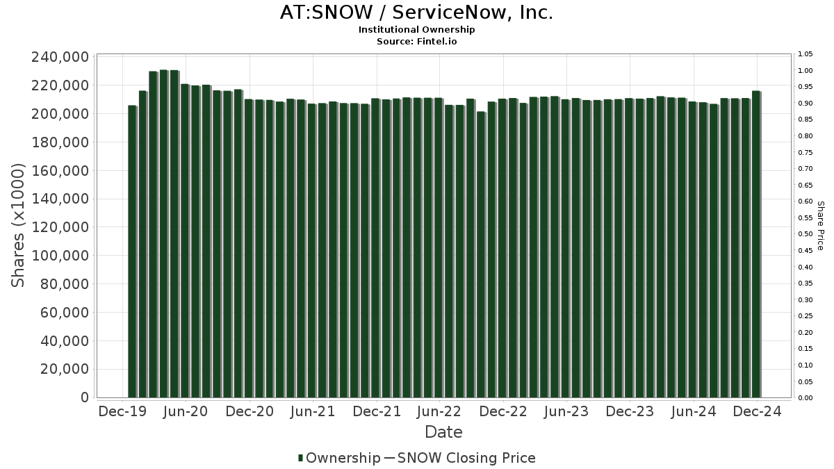 Currently, 3,213 funds or institutions hold positions in ServiceNow, reflecting an increase of 95 owners or 3.05% from the previous quarter. The average portfolio weight dedicated to SNOW across all funds is 0.43%, which has risen by 33.82%. Institutions have raised their total shares owned in the last three months by 1.23%, bringing the total to 216,140K shares.