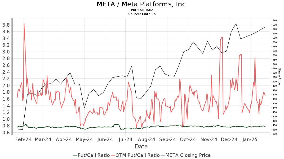 The put/call ratio for META is currently at 0.69, indicating a bullish sentiment.