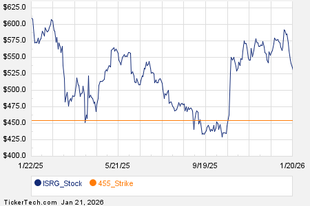 In the same market, Spotify Technology SA (SPOT) also saw active options trading, with 9,167 contracts traded, representing roughly 916,700 underlying shares—44.3% of SPOT’s average daily volume of 2.1 million shares. The $520 strike call option, set to expire on February 20, 2026, recorded 1,041 contracts traded, equivalent to about 104,100 underlying shares.