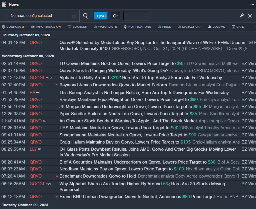 - Benzinga Pro’s real-time newsfeed provided the latest updates on QRVO.