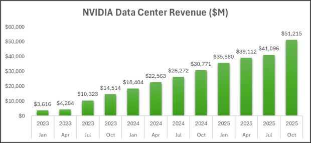 Below is a chart illustrating NVDA’s Data Center revenue on a quarterly basis.