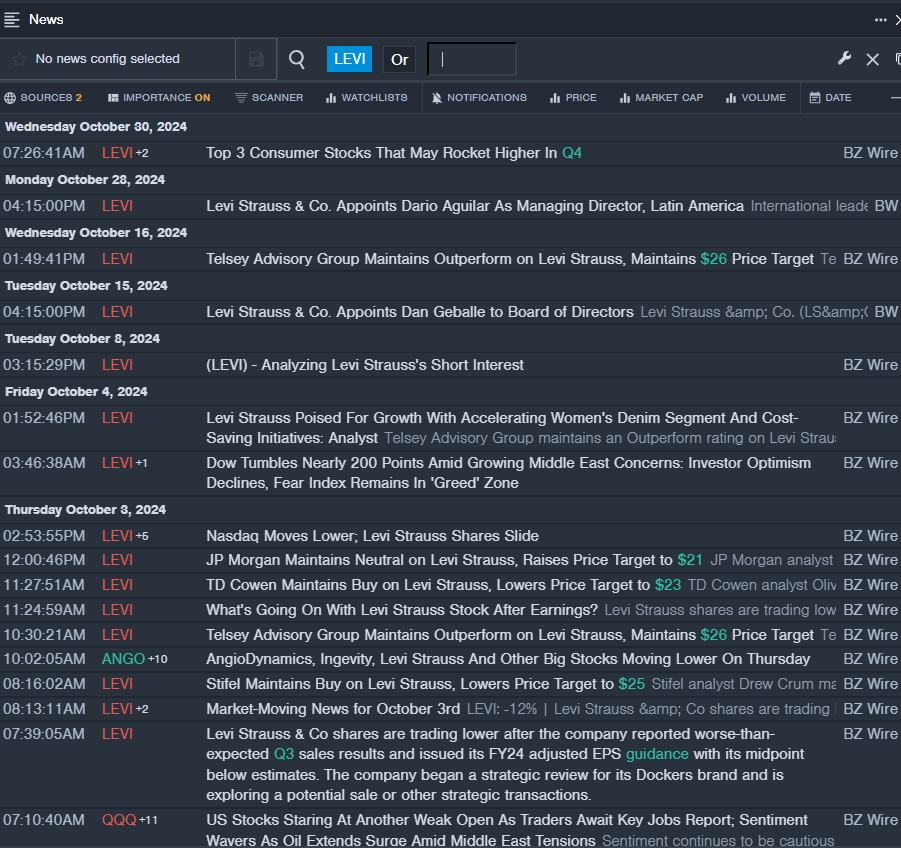 - LEVI Price Action: Shares ended Tuesday down 0.7%, closing at $16.86.