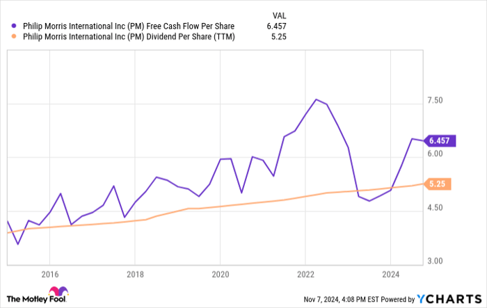 PM free cash flow per share, data by YCharts; TTM = trailing 12 months.