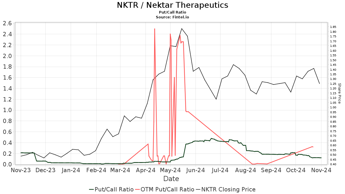 The put/call ratio for NKTR is currently at 0.12, signaling a bullish outlook.