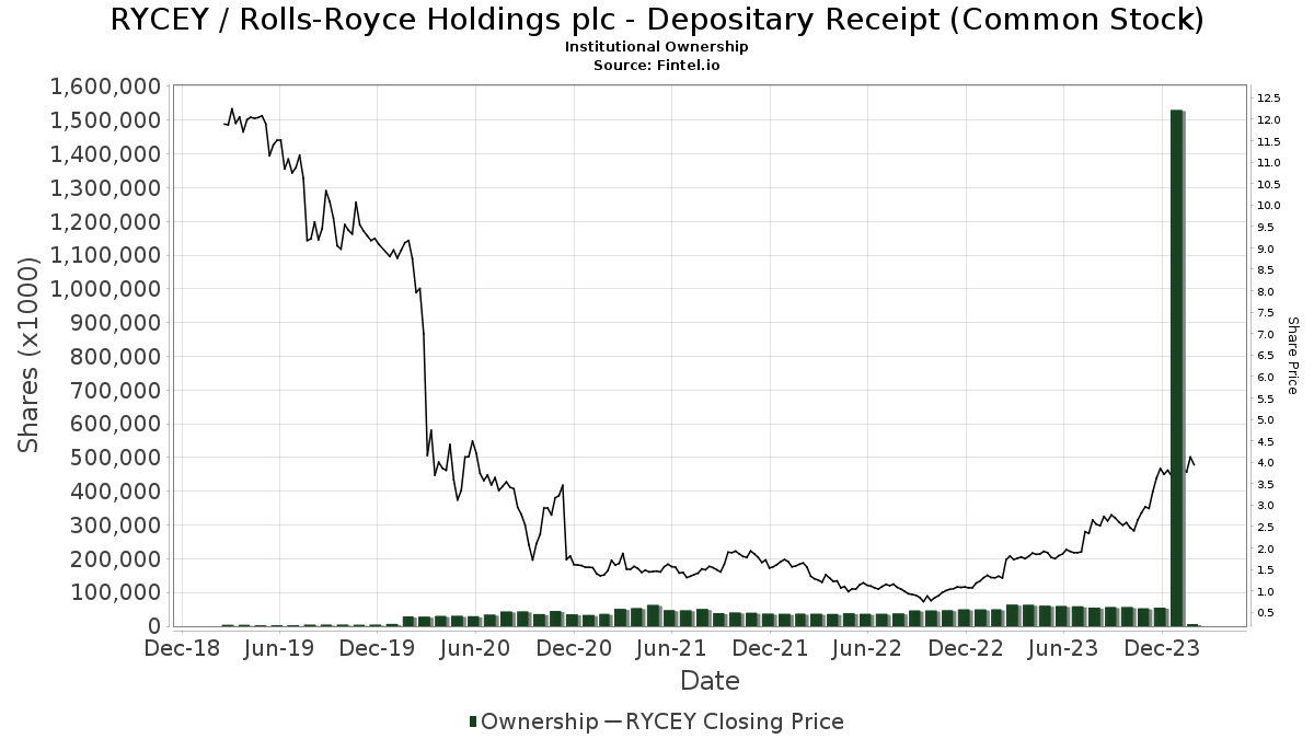 The ranks have swelled as 23 funds or institutions have emblazoned their names in support of Rolls-Royce Holdings plc – Depositary Receipt (). This surge of 4 owners, a 21.05% surge in the last quarter, signals unwavering faith in the stock. The average portfolio weight dedicated to RYCEY now stands at 0.27%, despite a slight drop of 20.54%. Collectively, institutions harbor 6,231K shares, a 1.00% dip in ownership over the past three months.