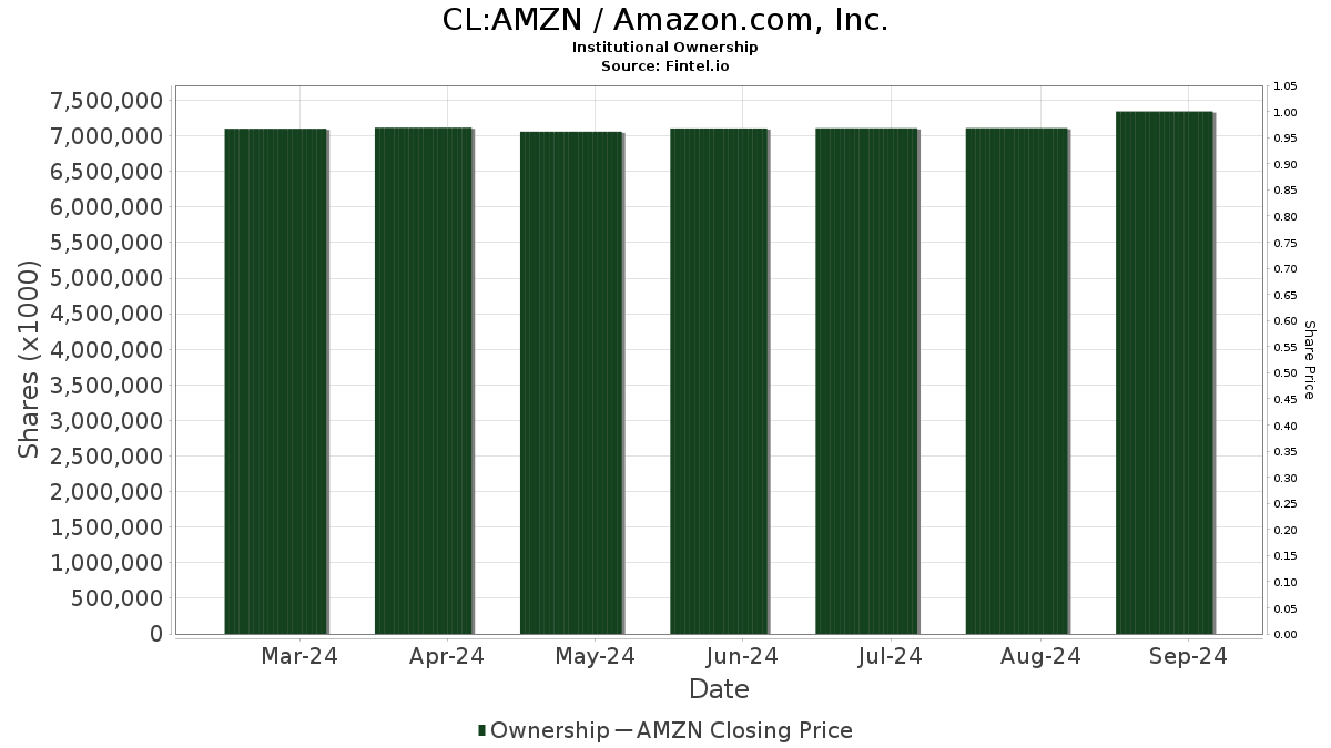 Geode Capital Management increased its holdings in Amazon to 193,369K shares, which is 1.84% of the company. This represents an increase of 2.86% from the prior filing, with a portfolio increase of 4.66% over the last quarter.