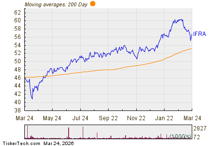 The iShares U.S. Basic Materials ETF (IYM) is experiencing a significant outflow of approximately $231.9 million, representing a 17.6% decrease in shares outstanding week-over-week, decreasing from 7,950,000 to 6,550,000.