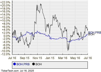 Bank of Hawaii Series B Preferred Stock Yield Exceeds 7.5%