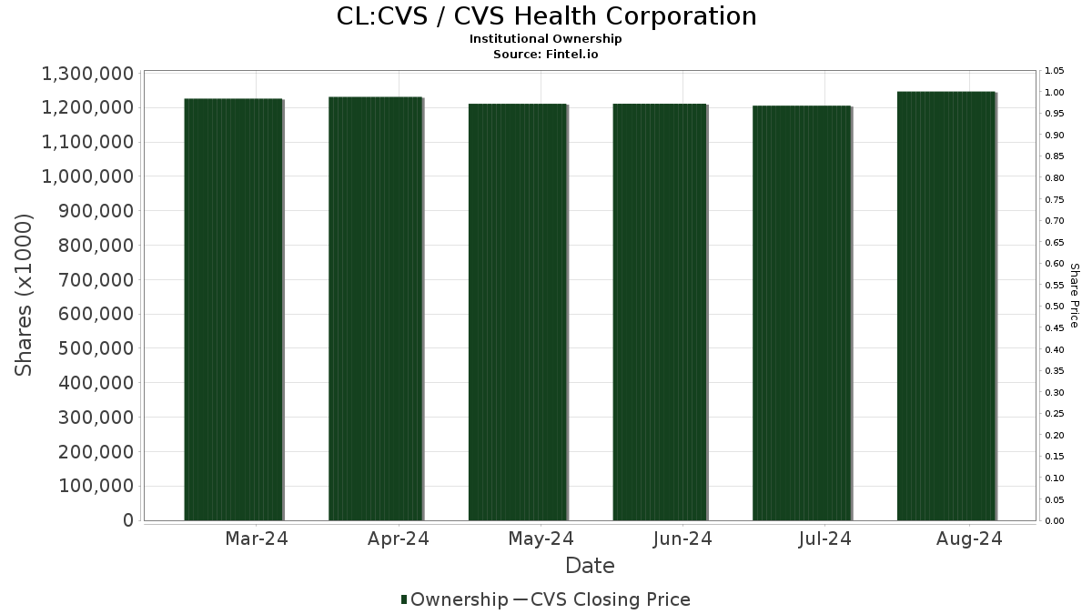 – 3,178 funds hold positions in CVS Health, with a decline of 280 owners or 8.10% in the last quarter.