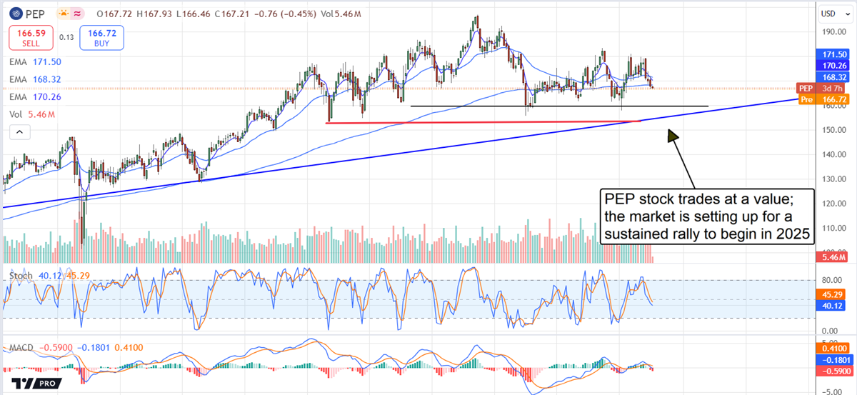 Following the earnings announcement, PepsiCo’s stock experienced limited movement, settling lower early in trading. However, analysts observe that the stock is approaching a strong support level at $160, which has historically shown resilience and may lead to a notable recovery. This level also aligns with an encouraging uptrend seen throughout 2024, suggesting the potential for sustained upward momentum.